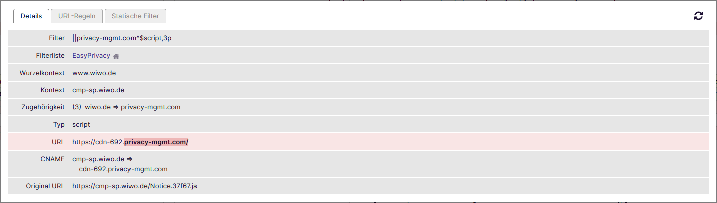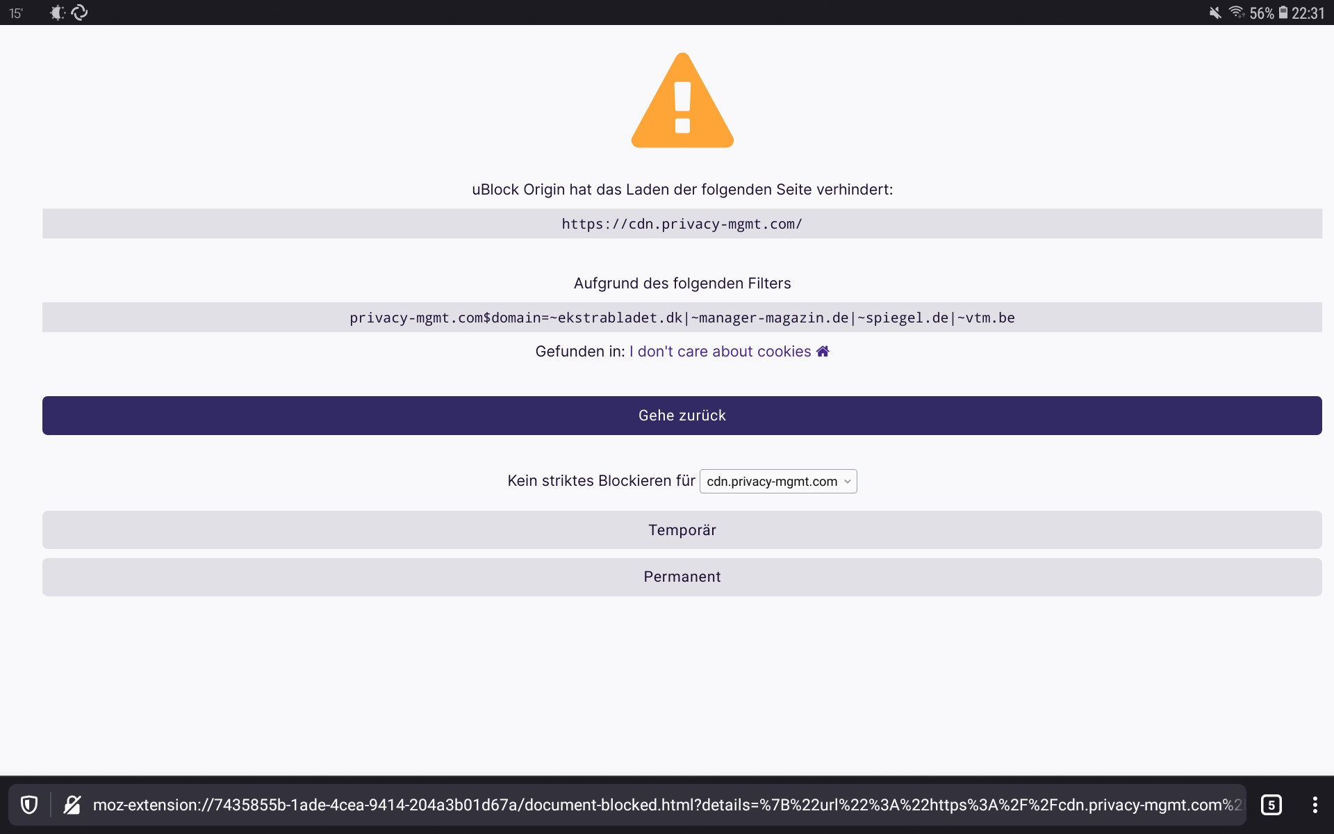 • Interessant finde ich es, dass die URL cdn.privacy-mgmt.com bei mir von uBlock Origin aufgrund der Liste von "I don't care about cookies" geblockt wird.