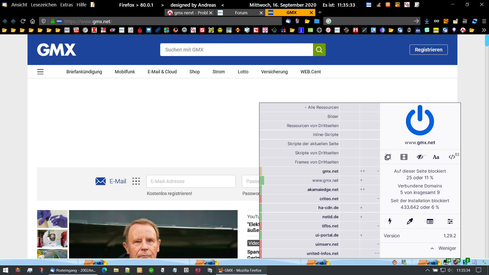 • Das kann ich dir so nicht sagen, weil gmx schon im ublock gefiltert wird, weil mir die Login-Seite bis auf das Login völlig egal ist.