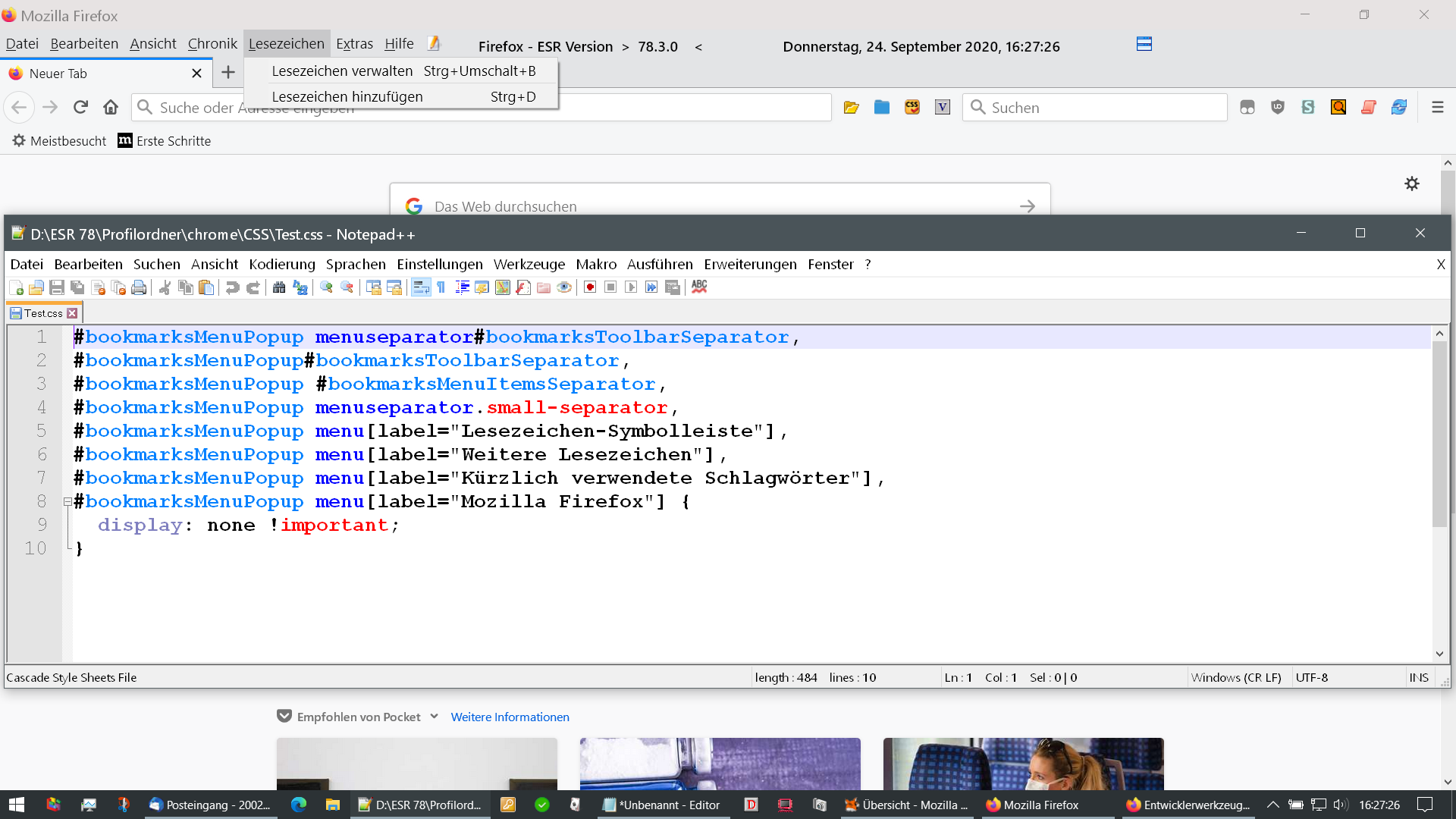 Ordner "Weitere Lesezeichen" in Menüleiste ausblenden