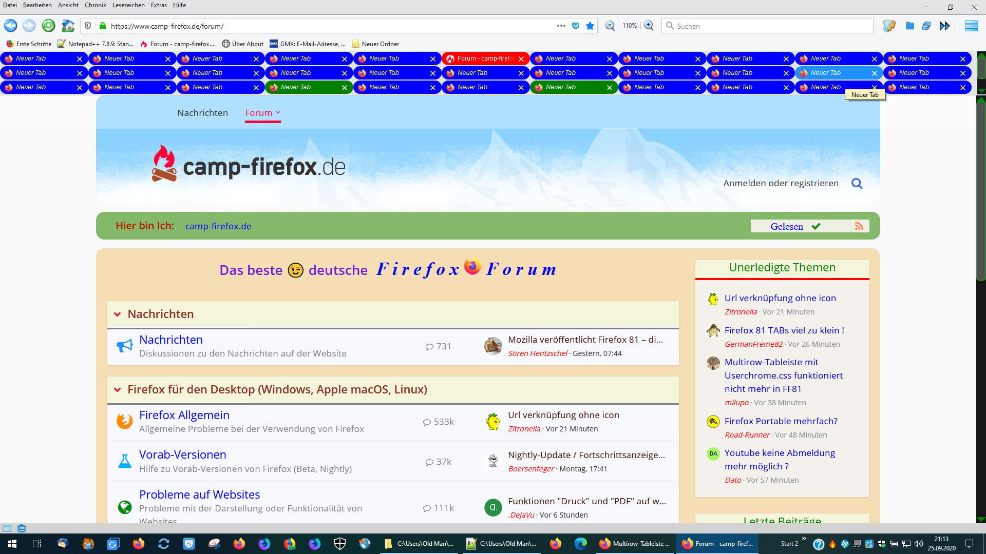 TAB "Google" ist genauso groß, wie der TAB "Forum -camp-firefox.de"