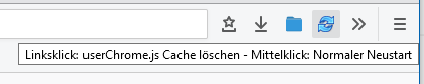 Nun kenne ich auch nicht die Version Deines Restart-Scriptes, denn da gibt es auch Unterschiede wie der Scriptcache gelöscht wird. Halte die Maus eine Weile über den Button, dann wird Dir das angezeigt. Sieht dann bei zwei Versionen des Scriptes so aus: