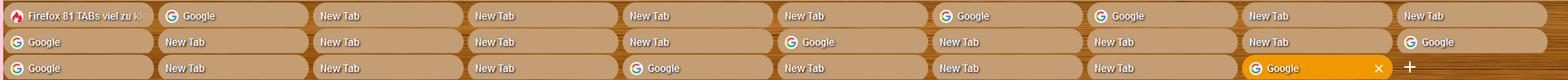 Das kannst Du selbst machen, denn um so mehr Tabs Du öffnest, so werden auch mehr Tab-Reihen angezeigt. Wieviele es sein sollen wird in dem Script von hier RE: Firefox 81 TABs viel zu klein ! in Zeile 69 max-height: calc( 3 * 28px ) !important; /* Anzahl der Tabreihen * Minimal-Höhe */