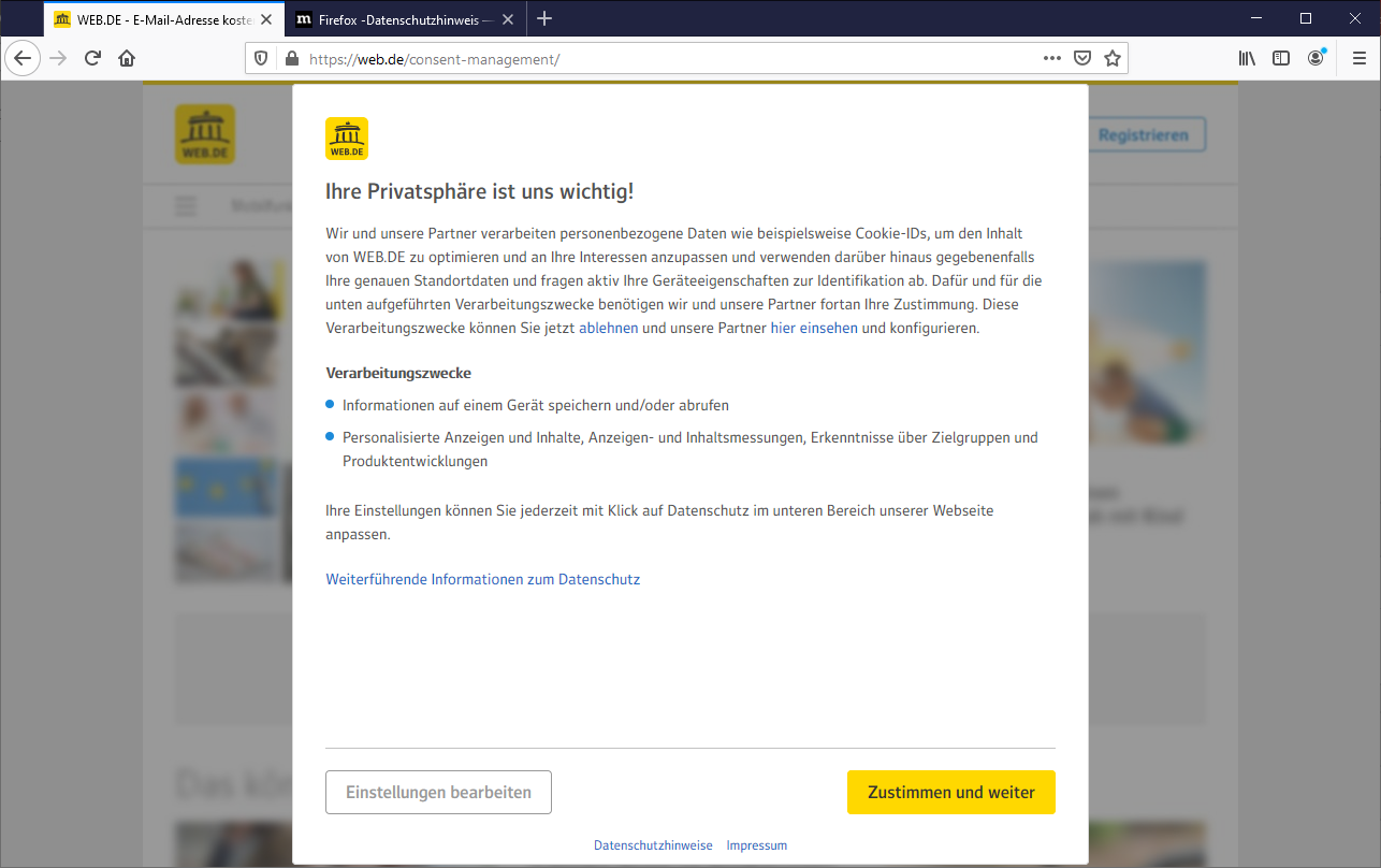 seit einigen Tagen (evtl. seit Update auf 81.0) friert die GMX-Login Seite ein und ist unscharf. Vorher wird kurz der Google Datenschutz-Hinweis angezeigt, ist aber gleich wieder weg. Nach nochmaligem Aufruf ist sie scharf und ich kann auch scrollen. Passiert nur bei GMX, alle anderen Lesezeichen werden einwandfrei geladen, ebenso verhält es sich beim Edge und beim IE.
