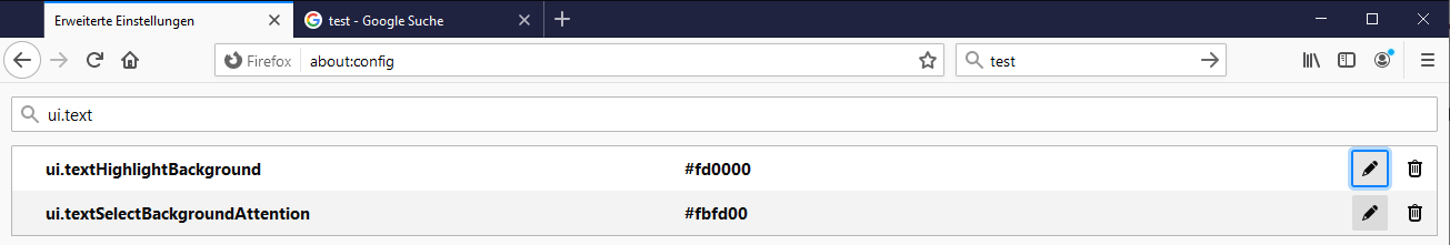 Dazu müsstest du in about:config zwei neue string Werte anlegen nämlich