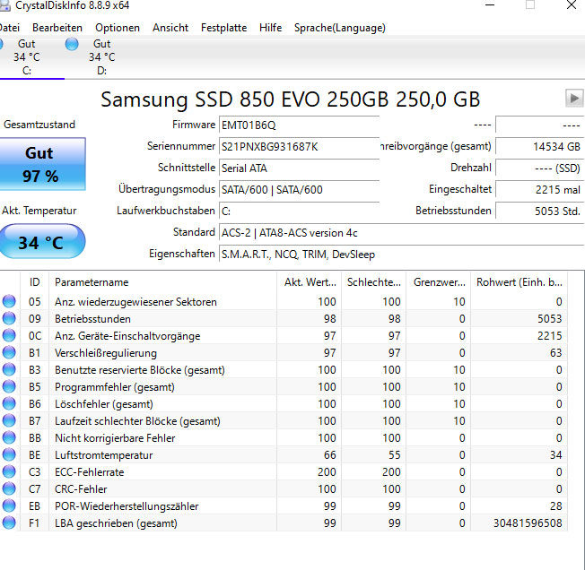 Deswegen - prüfe deine Festplatte auf Speichermangel und ggf mit Crystal Disk Info die SMART-Werte