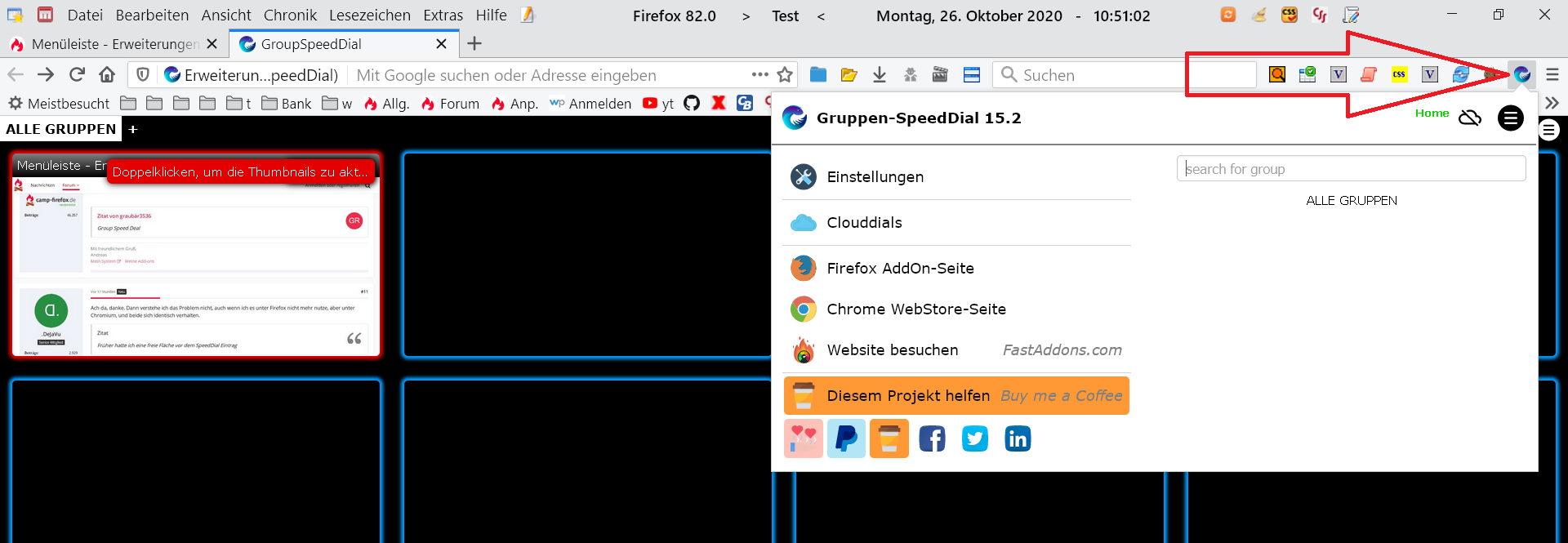 Bisher hatte sich mir mit einem neuen Tab der Speed Dial geöffnet. Seit einigen Tagen (Update 82.0 ?) funktioniert das nicht mehr. Über Einstellungen sind zwar für neue Tabs verschiedene Möglichkeiten vorgegeben. Diese befriedigen mich alle nicht. Im Speed Dial hatte ich 8 von mir immer wieder genutzte Seiten gelistet und das war optimal.