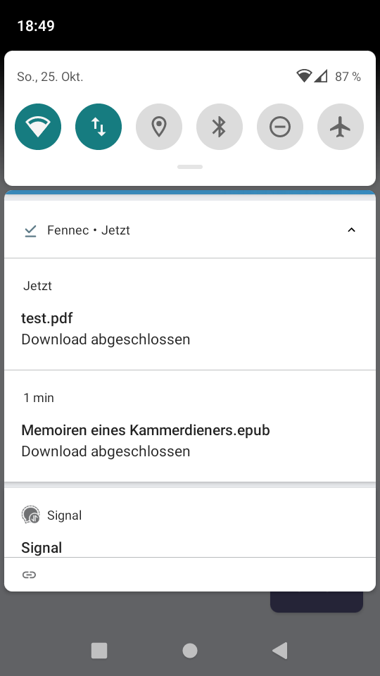 Du hast recht, ich hatte in der 82.1.1 "öffnen in App" aktiv. Ohne aktiviere Einstellung tut sich nix beim Download.