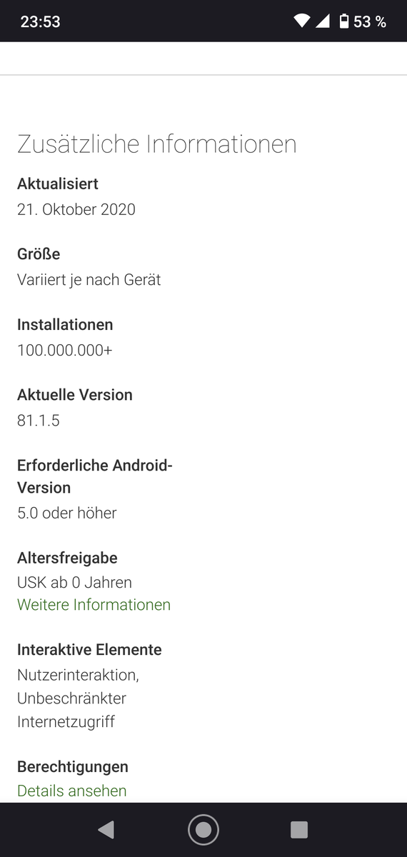 Am Desktop passiert übrigens genau das Gleiche, auch da werden neue Major-Releases grundsätzlich immer schrittweise ausgerollt. Der Unterschied ist nur: Am Desktop kannst du das Update erzwingen, indem du den Info-Dialog aufrufst. Der Google Play Store stellt keinen Mechanismus für Nutzer bereit, ein Update zu erzwingen.