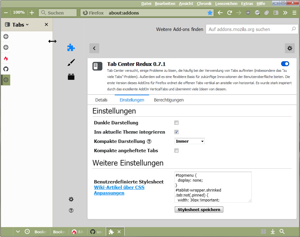 Mit dem Add-On Tab Center Redux habe ich die Menü-Breite leider nicht auf Symbolbreite reduzieren können?