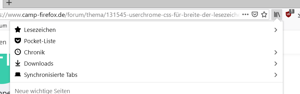 wenn ich im unten abgebildeten Screenshot auf Lesezeichen klicke, werden mir die kürzlich gesetzten Lesezeichen angezeigt, und zwar in derselben (mir zu geringen) Breite, wie abgebildet. Die Breite der Leiste kann ich auch nicht, wie etwa beim Windows-Explorer, einfach per Mausziehen verbreitern.