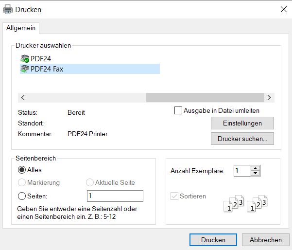 Mir ist heute aufgefallen, dass Microsoft Print to PDF seitens des Firefox gar nicht mehr angeboten wird, wenn ich anstatt des Papierausdrucks eine PDF-Datei erstellen und diese speichern möchte. Beim Edge Chromium wird Microsoft Print to PDF noch im Auswahlmenü angeboten, im Firefox nur noch das installierte Programm PDF24.