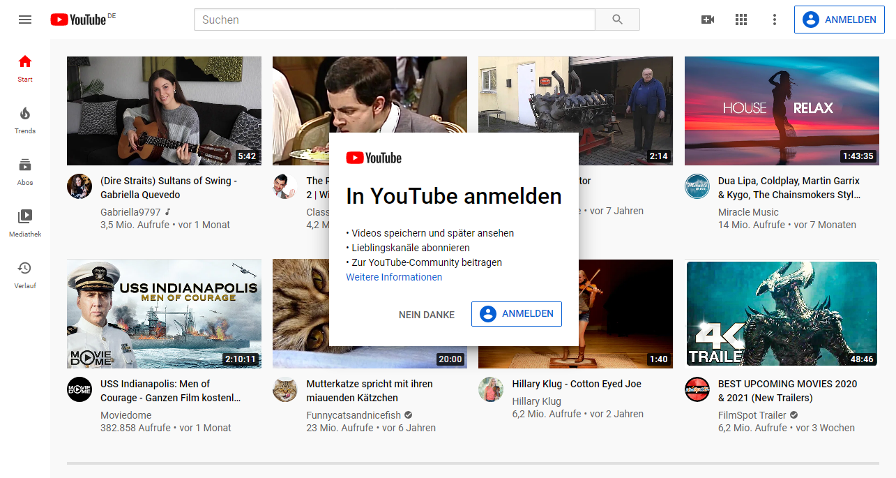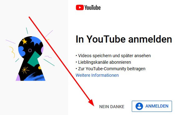 suche Youtube “Anmelden / Nein Danke” Blocker / Anlicker