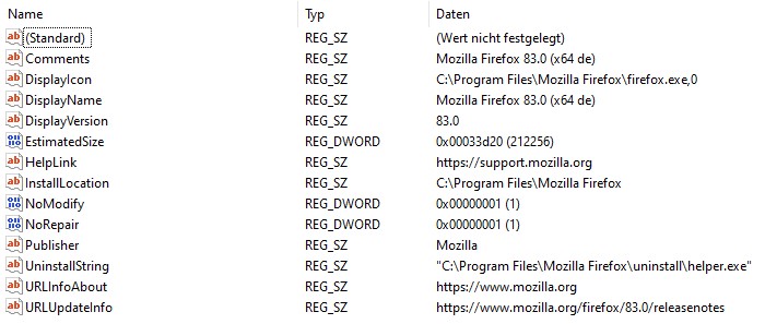 [HKEY_LOCAL_MACHINE\SOFTWARE\Mozilla\Mozilla Firefox\83.0 (x86 de)]