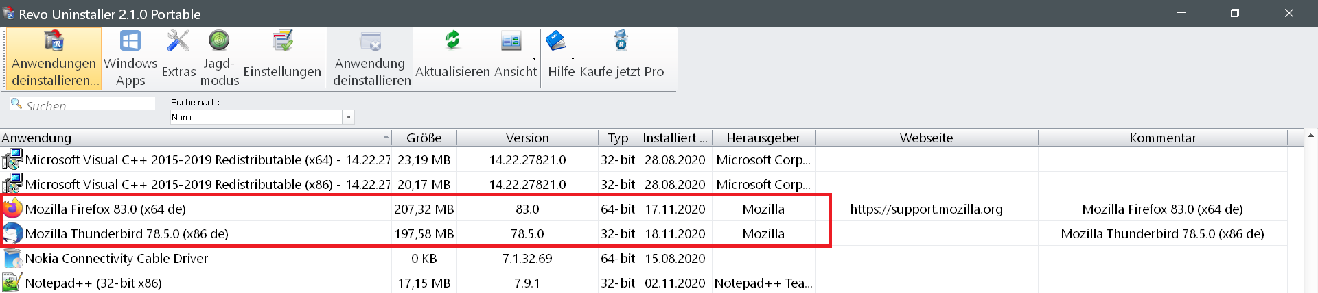 Somit sieht und anzeigt Revo Uninstaller diese Programme doppelt, s. beigelegter print_screen. Ich traue mir nicht, dort die ältere Version zu löschen.