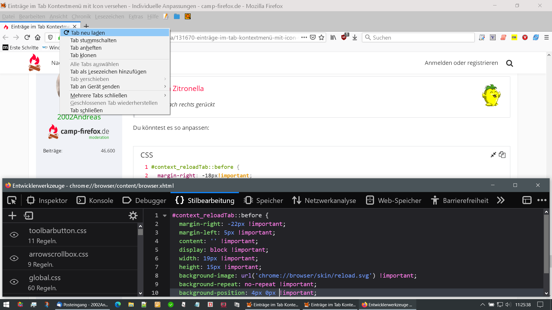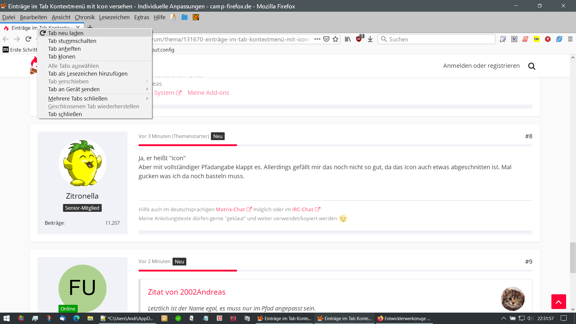 Also zb für "Tab neu laden" ein Icon (evtl. Base64 Code) davor zu machen.
