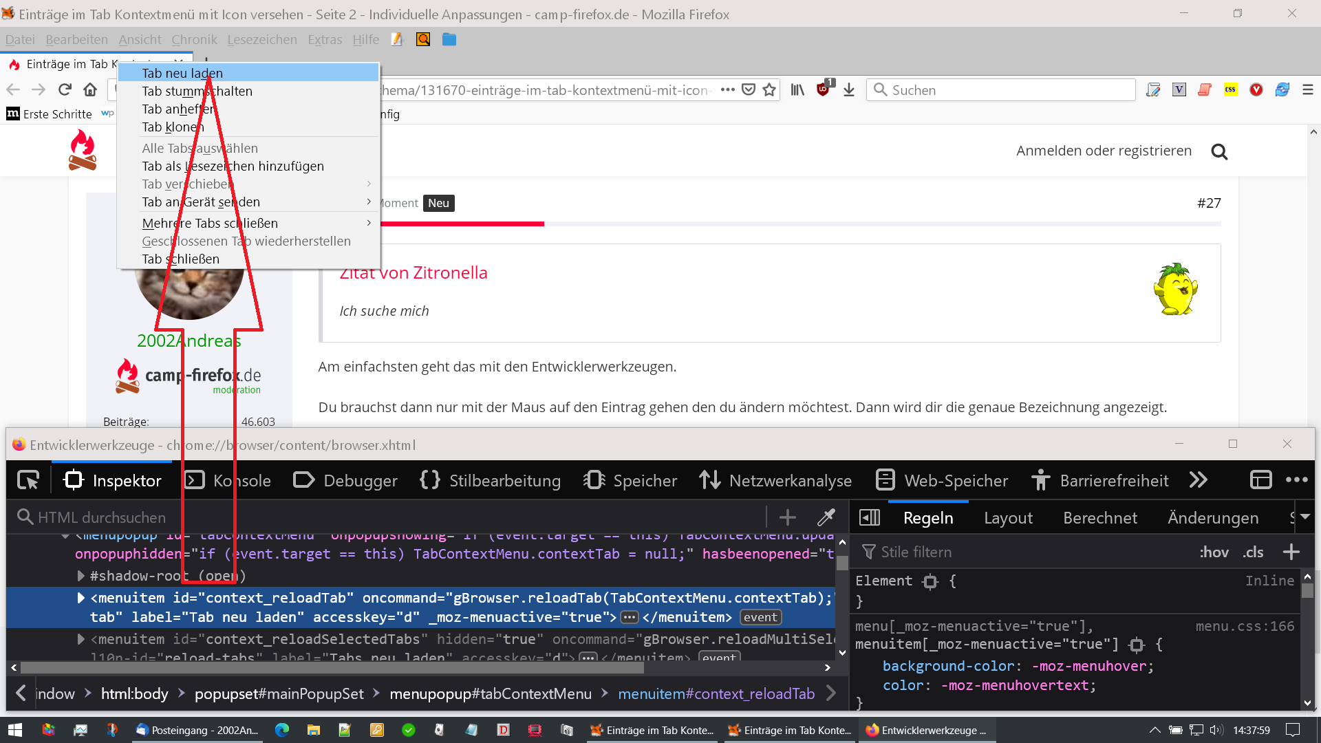 Einträge im Tab Kontextmenü mit Icon versehen