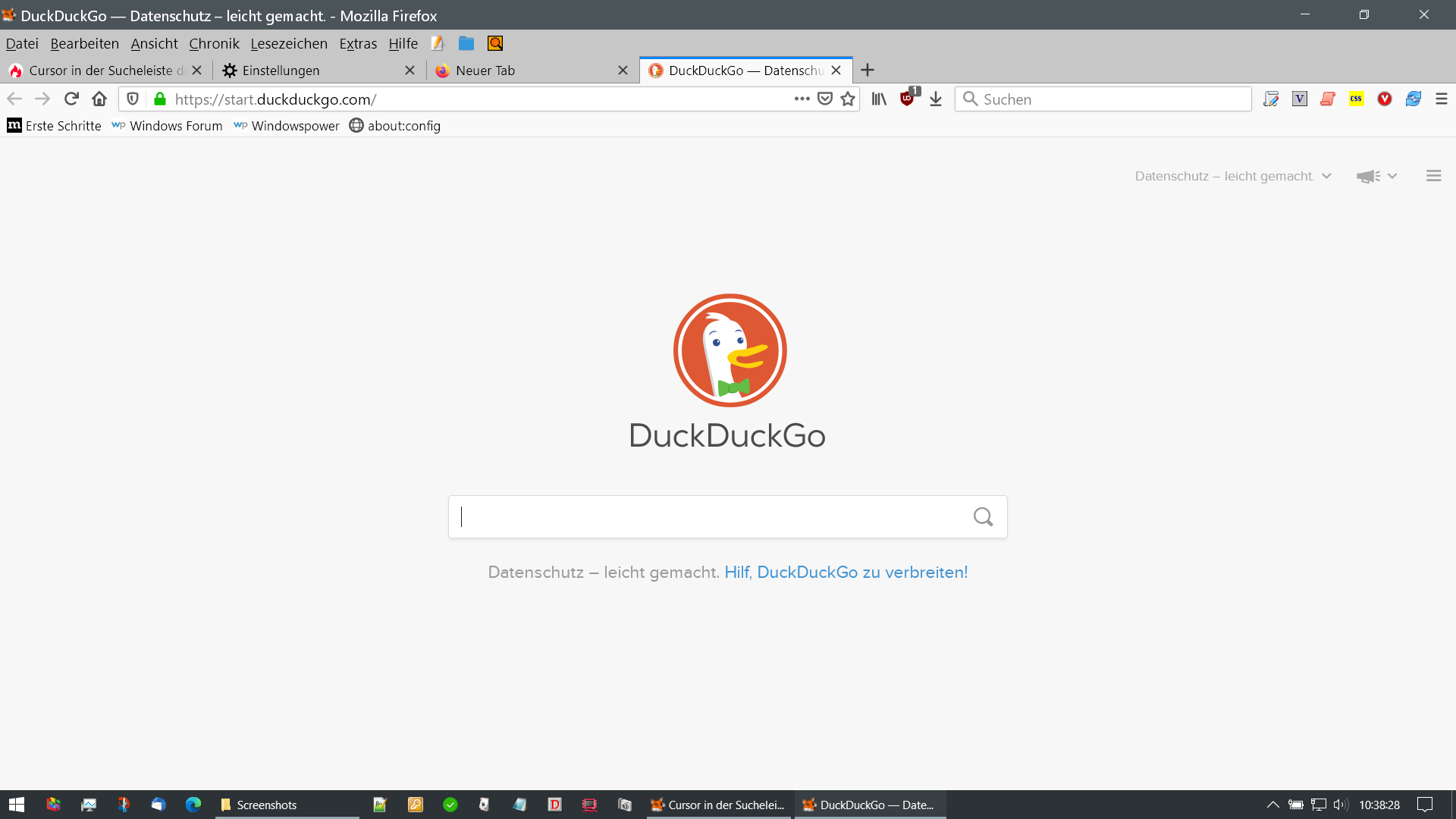 Cursor in der Sucheleiste des Startbildschirms und nicht in der Adressleiste