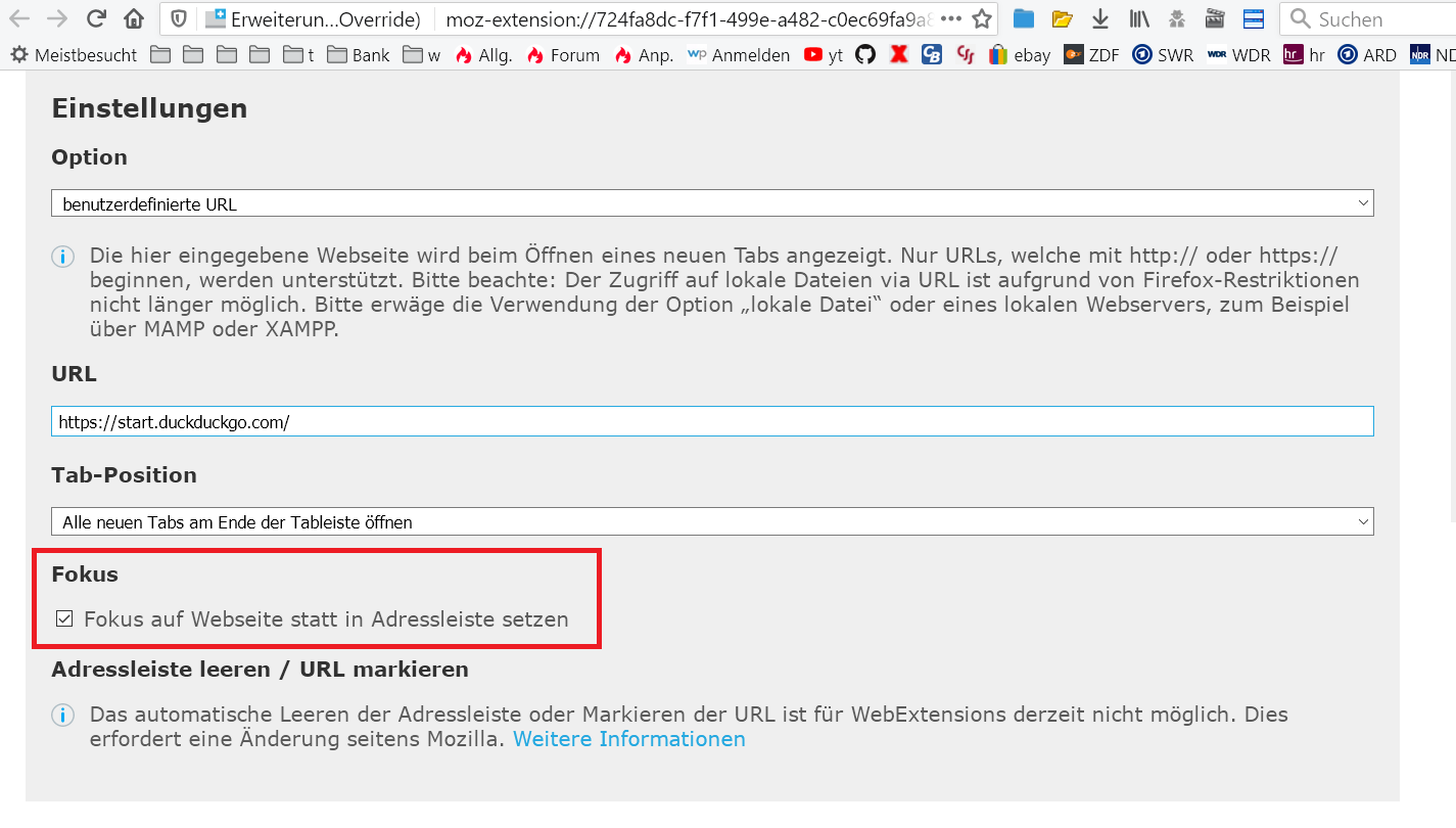 ich habe leider zu meiner Frage im Forum noch nichts gefunden... wie kann man beim Öffnen eines neuen Tabs den Cursor gleich in der Sucheleiste des Startbildschirms haben, anstatt in der Adressleiste?