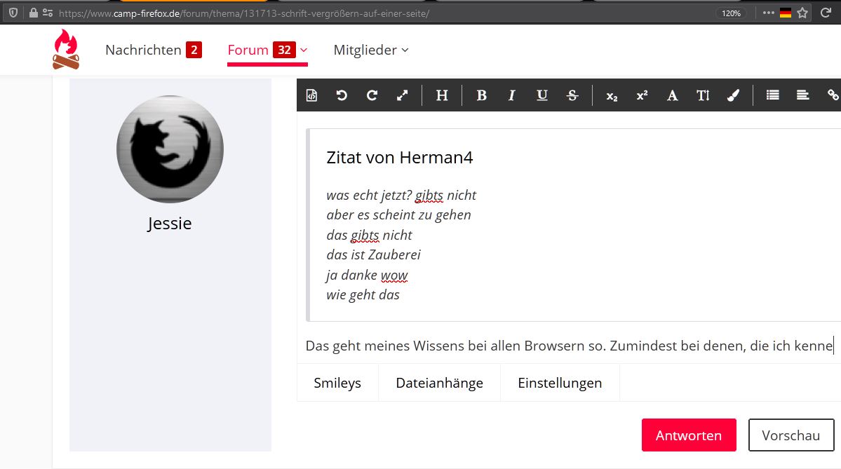 kann man das nicht auf der Seite automatisch ein bisschen grösser einstellen die Schrift?