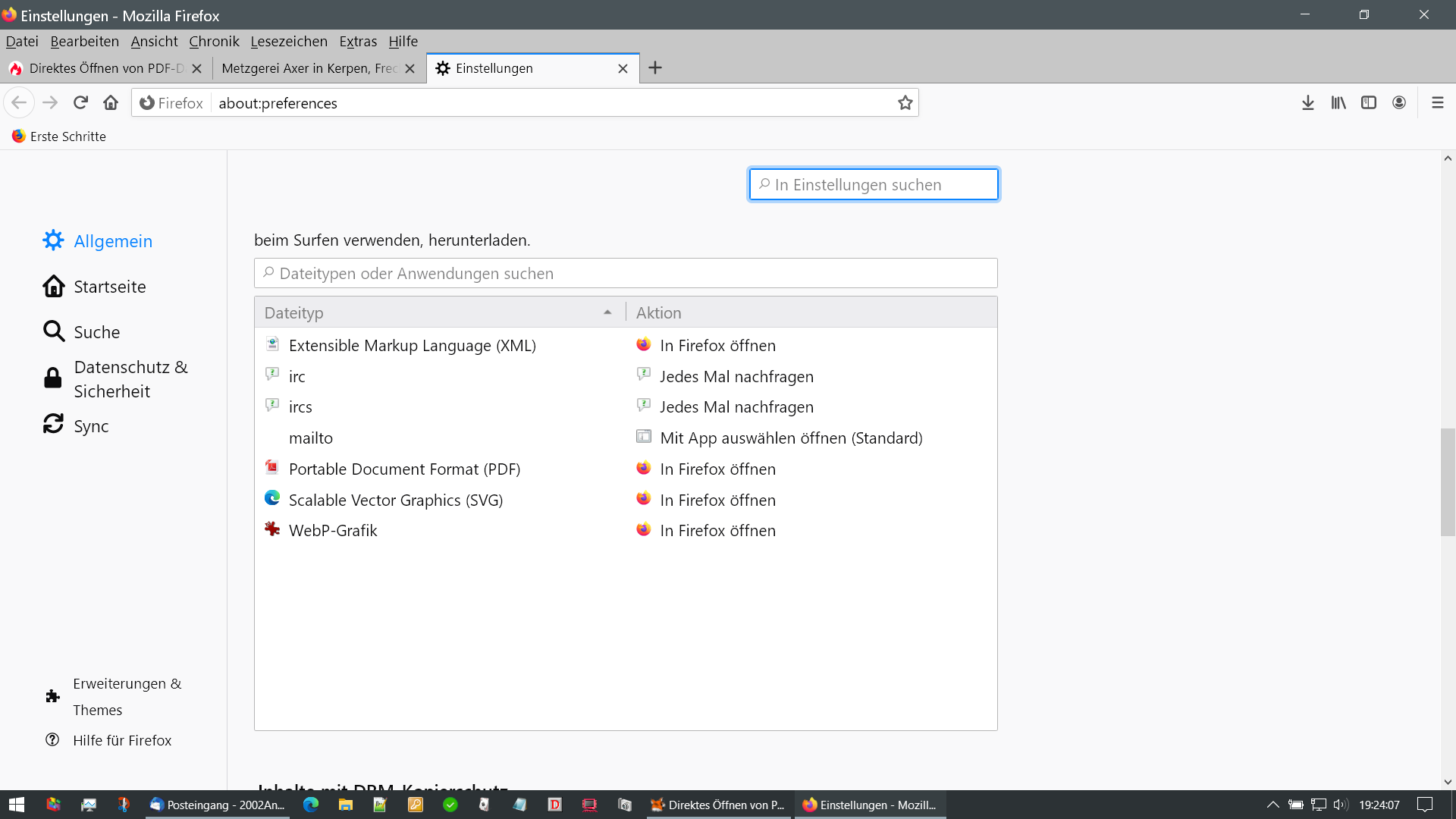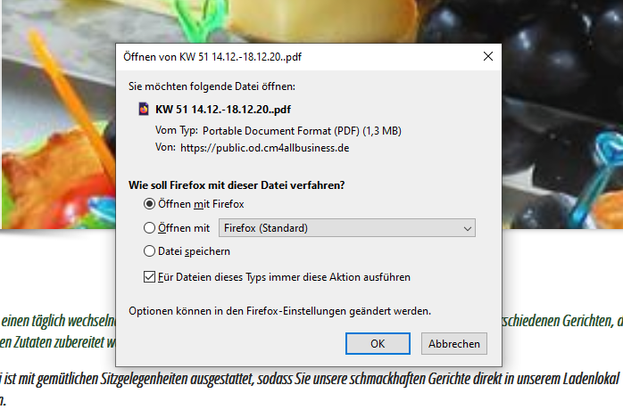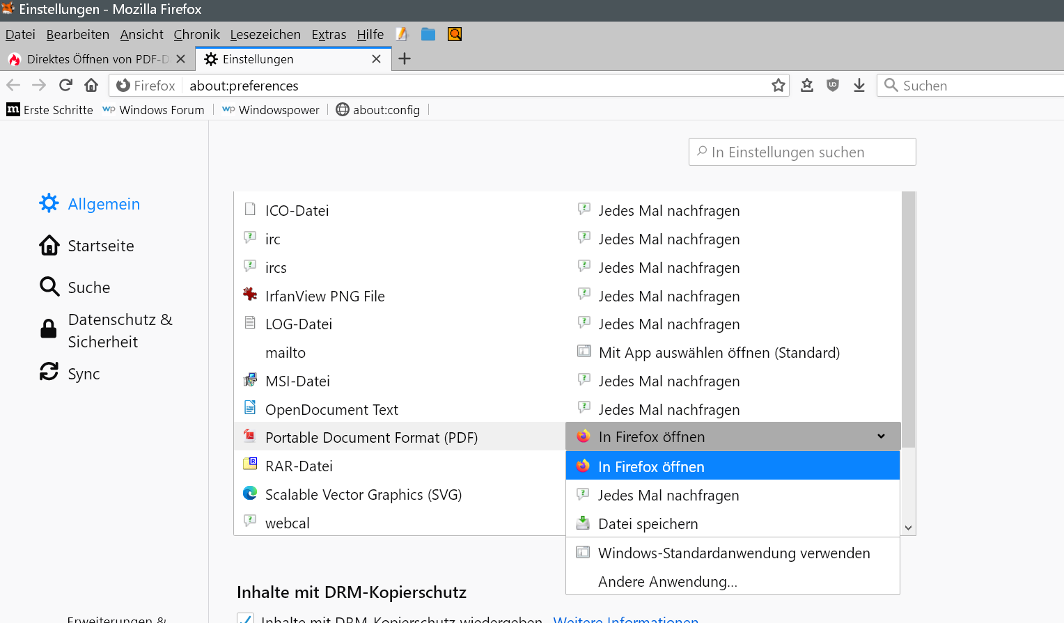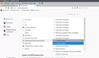 Dabei spielt es keine Rolle, ob der Haken gesetzt ist bei "Für Dateien dieses Typs immer dies Aktion ausführen" oder welche Aktion gewählt wurde. Ist es möglich, es so einzustelen, dass dieses Fenster überhaupt nicht mehr erscheint, sondern das nach Anklicken von PDF downloaden die Datei direkt im PDF-Viewer angezeigt wird?