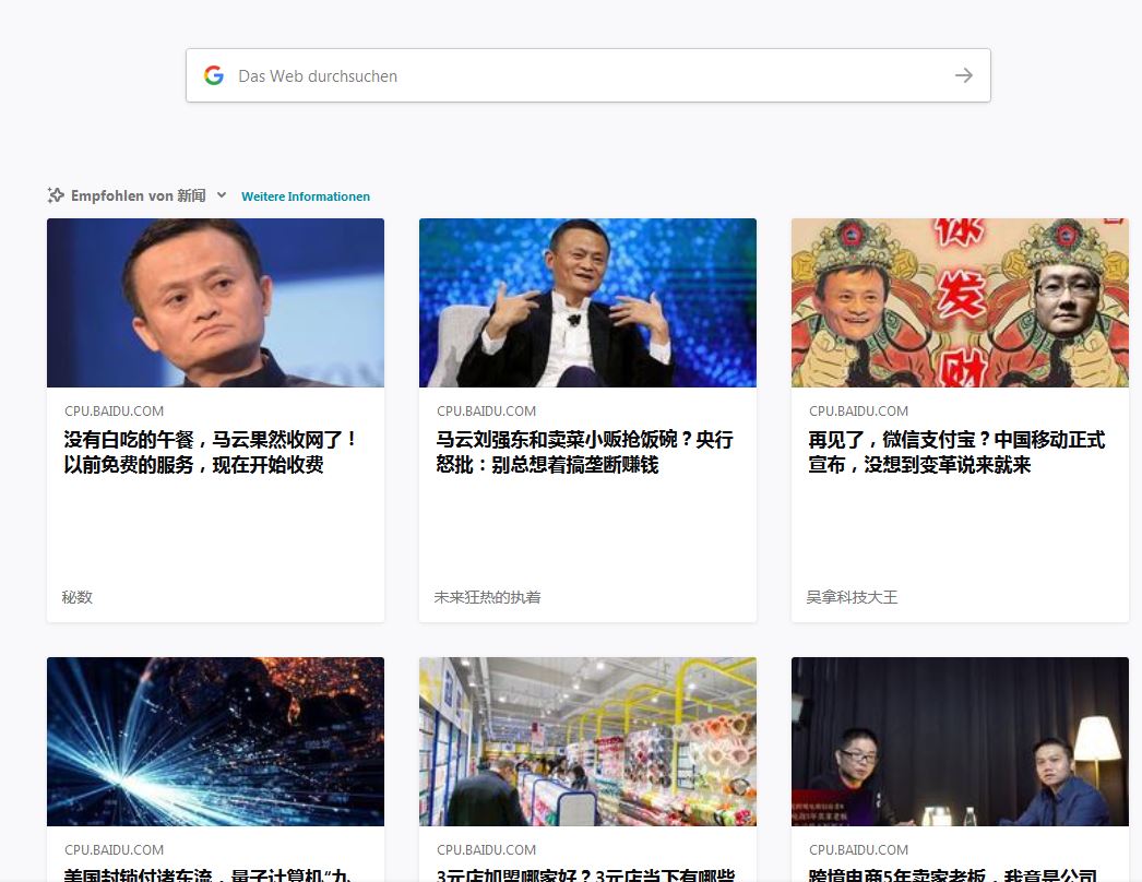 Beim Öffnen eines neuen Tabs werden chinesische Sites empfohlen. Wie stelle ich das ab?