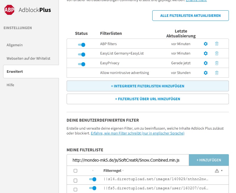 Adblock Plus ist installiert, finde da aber keine Möglichkeit.