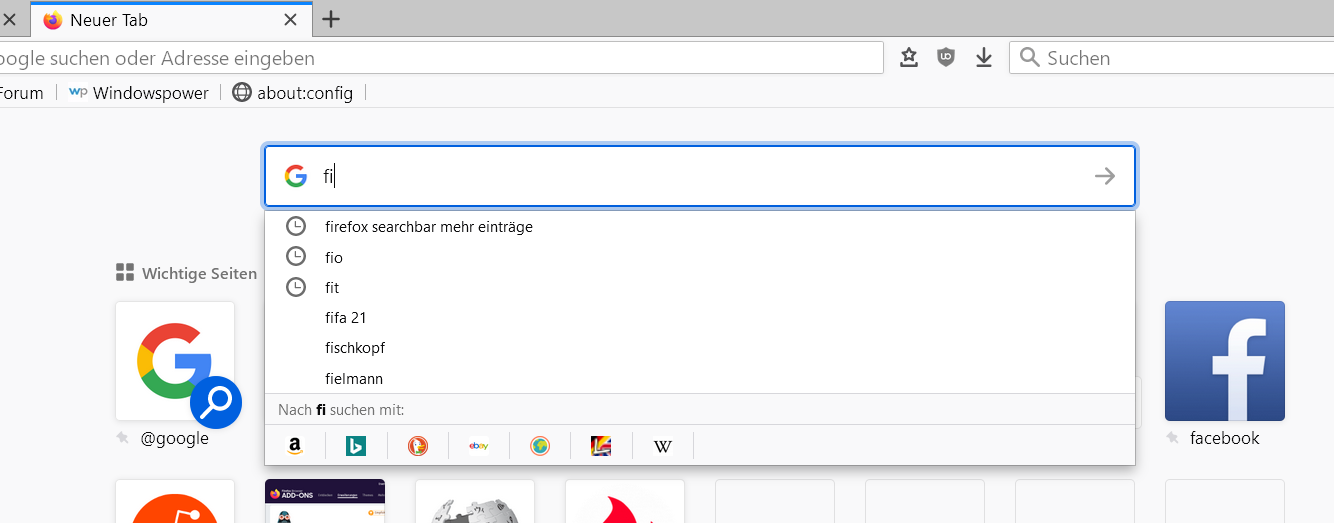 Wo finde ich ggf. in der about:config einen Parameter, der die Anzahl der angezeigten Suchvorschläge ändert, um mehr als 6 Vorschläge bei dieser Suchleiste zu bekommen?