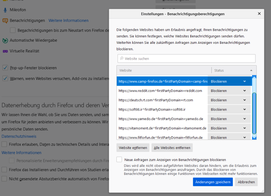 Dein Problem bleibt damit für alle Seiten, bei denen die Berechtigung explizit nicht erteilt worden ist, allerdings ungelöst. Wieso du das Problem erst seit ca. einem Monat hast, habe ich ja auch erklärt: Du hast es entweder durch eine andere Anpassung kaputt gemacht oder ein Firefox-Update hat etwas geändert, womit eine deiner Anpassungen nicht mehr kompatibel ist. Das sind die zwei Optionen.