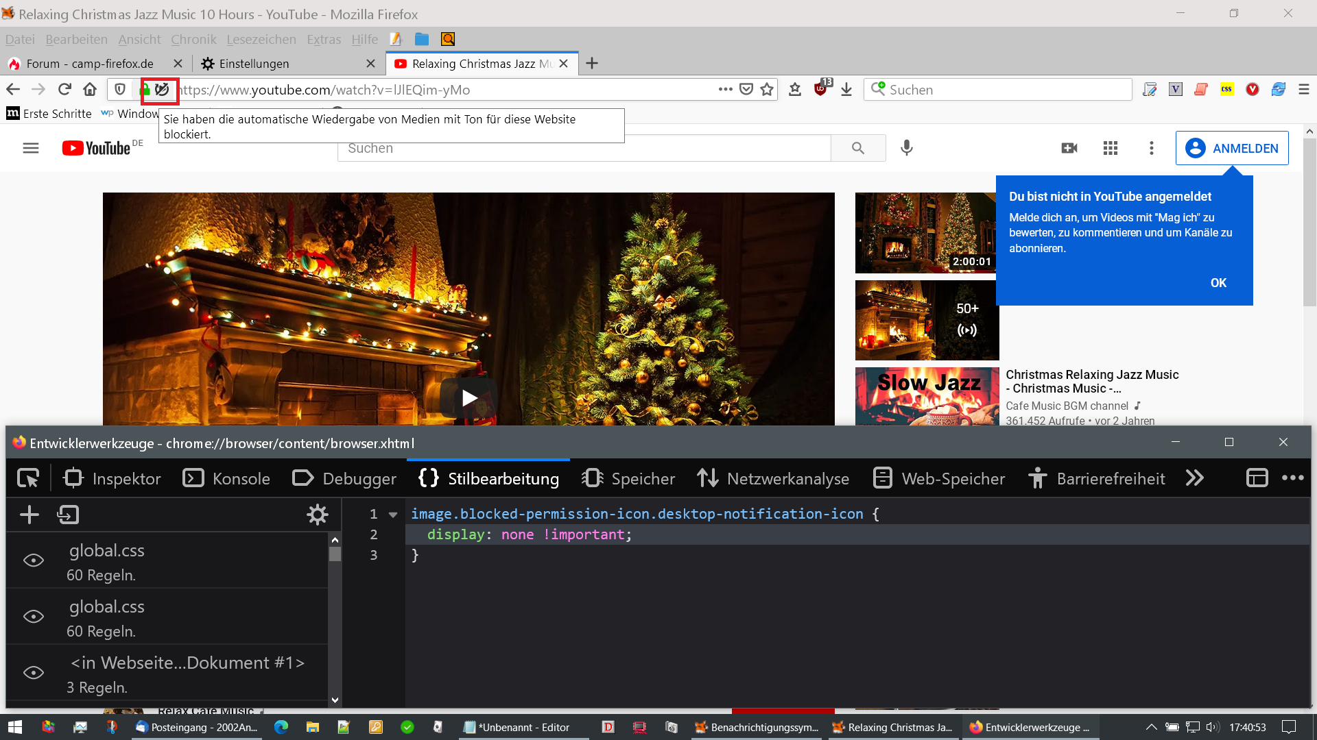 Wenn überhaupt wäre der Selector jetzt noch allgemeiner, aber .blocked-permission-icon wird immer ein image sein und nicht manchmal und manchmal nicht, d.h. der neue Code ändert nichts im Vergleich zur vorherigen Version. Ich hab's jetzt doch mal getestet, anhand der blockierten Autoplay-Berechtigung, und kann bestätigen, dass dein Code auch die anderen Icons entfernt, welche blockierte Berechtigungen darstellen, nicht nur das Icon für Benachrichtigungen.