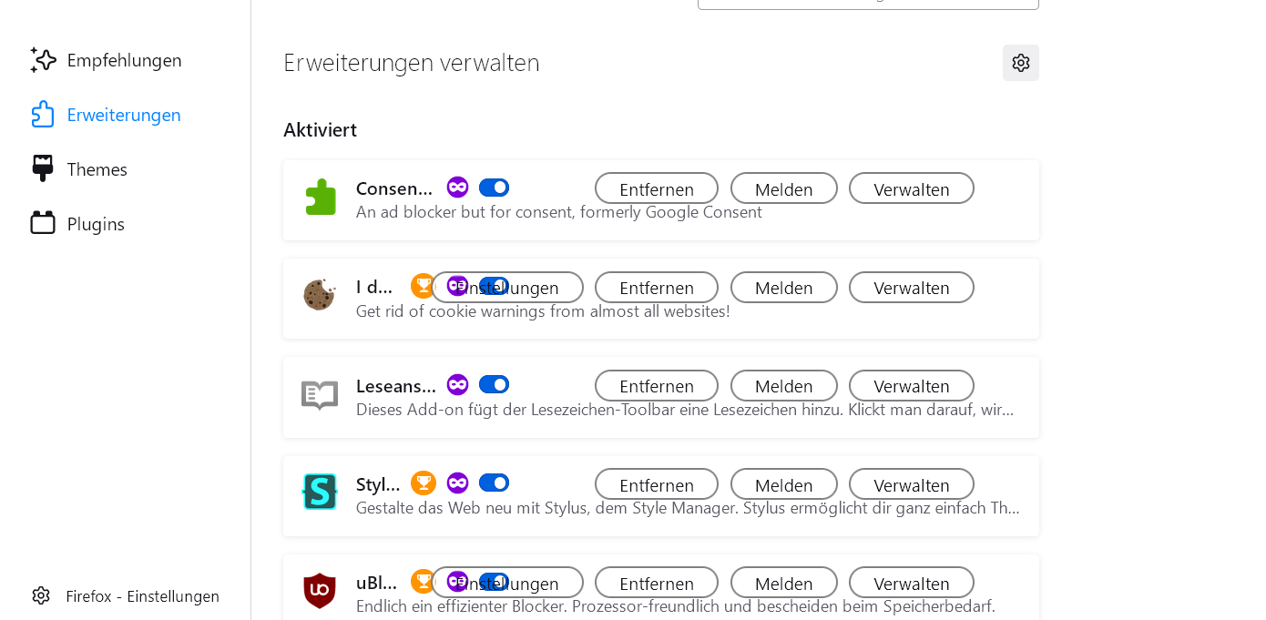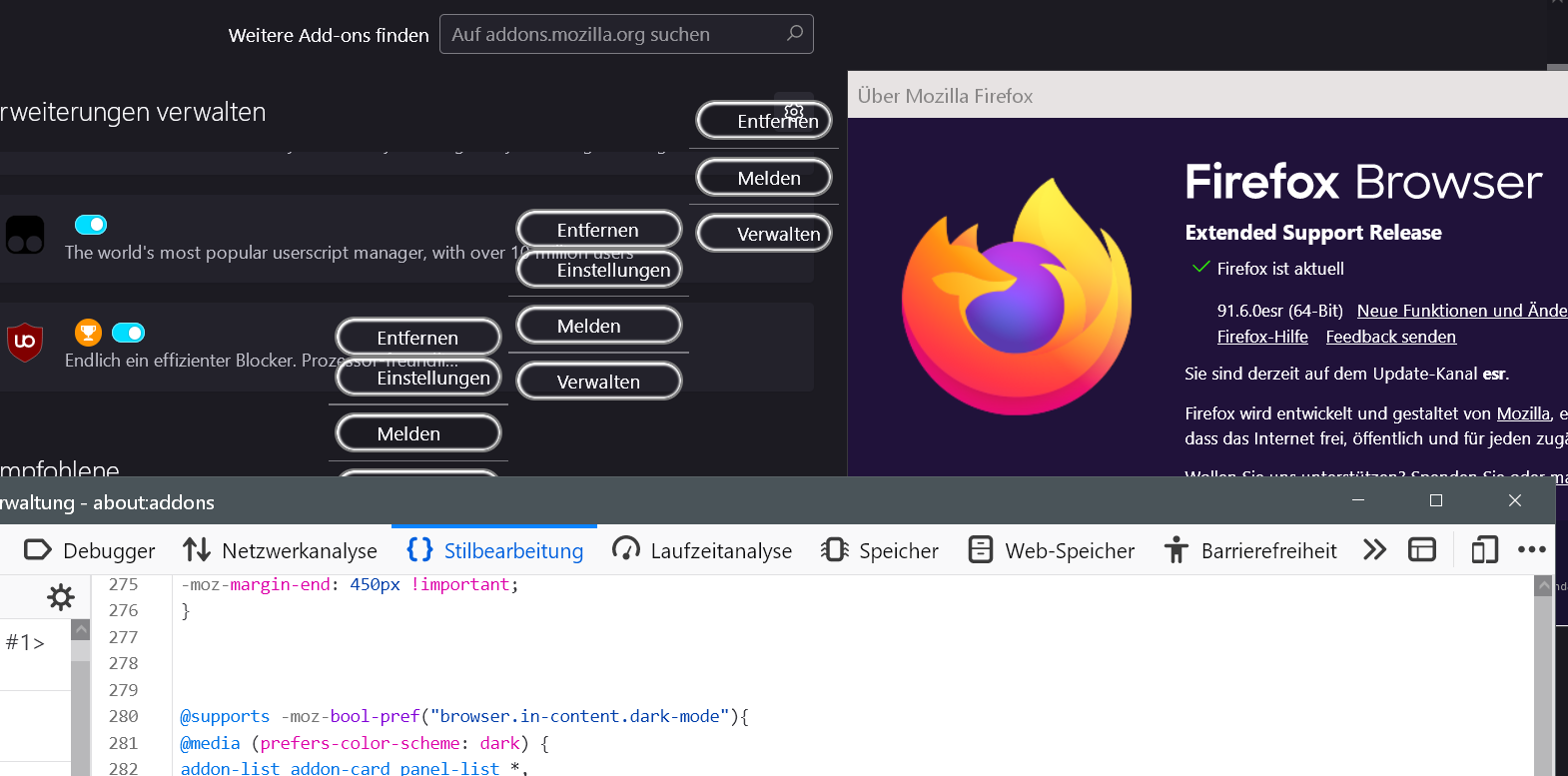 P.S.: In meinem primären Profil ist die Anpassung dafür noch deutlich aufwändiger, denn da sind die aktiven und inaktiven Add-ons deutlich unterschiedlich im Aussehen.