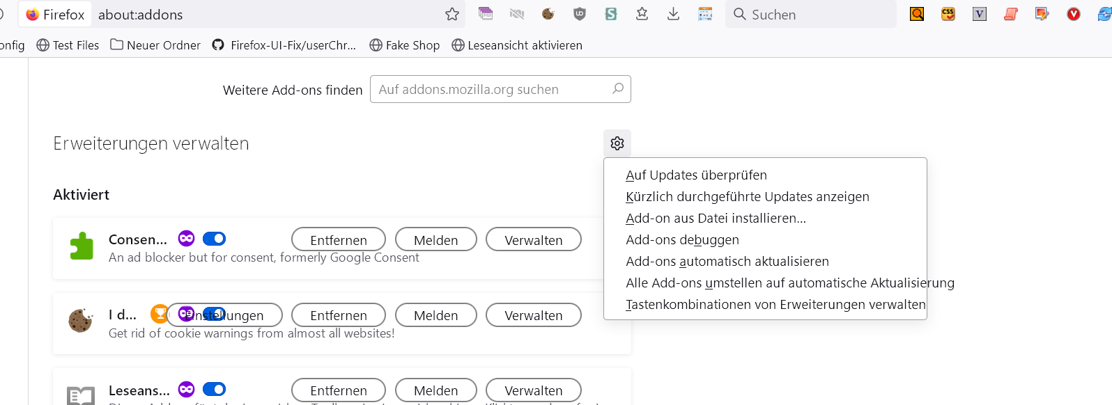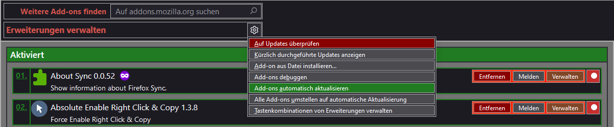 die Button hinter dem Zahnrad sind davon dann auch betroffen.