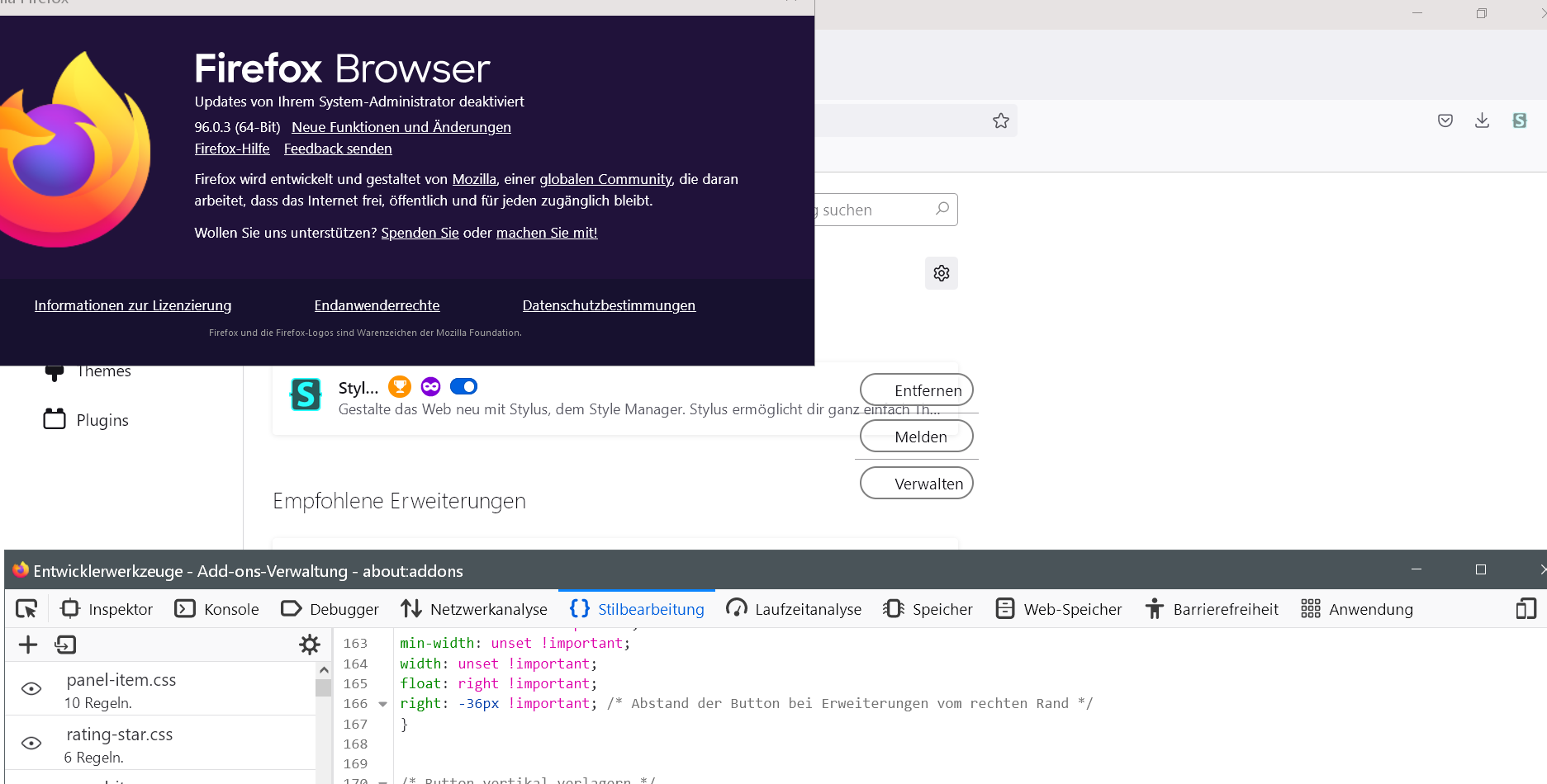 Wie bekommt man in about:addons die Butten wieder nebeneinander