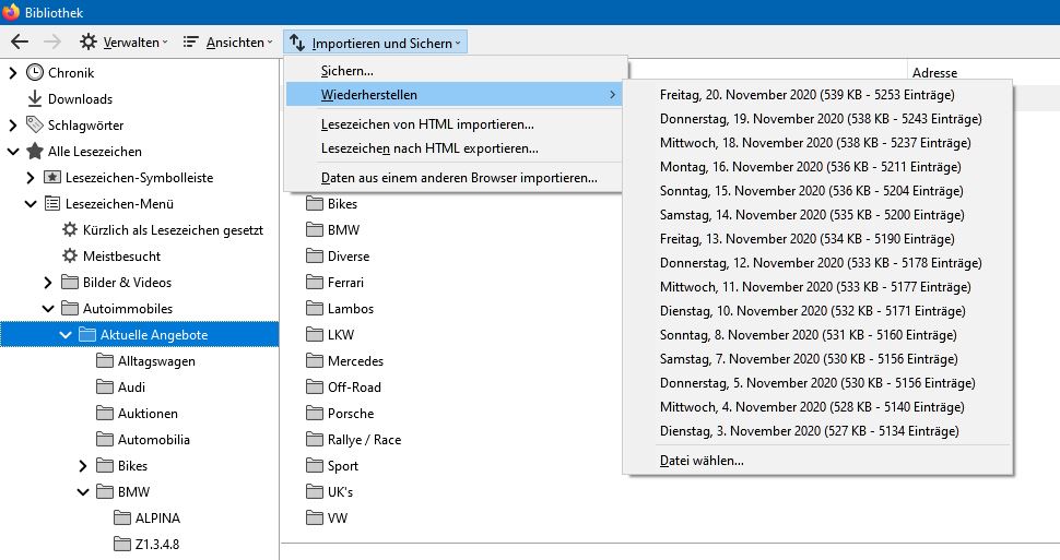 • Ich hatte viele Jahre den Internet-Explorer genutzt, da war alles sehr sehr einfach. Dort konnte ich den Ordner "Favoriten" einfach kopieren und zur Datensicherung irgendwo einfügen. Ging razzfazz!