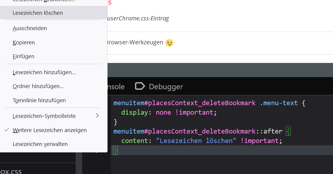 content: "Lesezeichen löschen" !important;