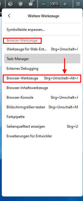 • Ähm, wie kann ich die Anzeige mir den Browser-Werkzeugen öffnen?