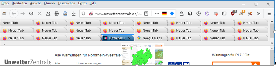 Das Einzige, was nicht mehr funktioniert, ist das gezielte Verschieben von Tabs innerhalb der Tableiste. Verschiebe ich einen Tab mittels gedrückter linker Maustaste, dann landet der irgendwo, aber nicht da, wo ich ihn gerne hätte