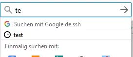 Zb. ich suchte nach dem Wort test und beim nächsten Mal wenn ich nur te eingebe wird das Wort als Vorschlag angezeigt