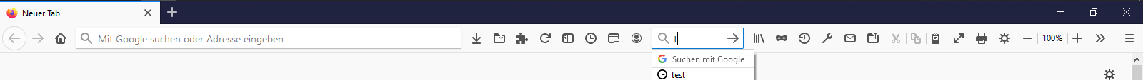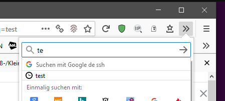 • ja, das stimmt wohl, allerdings muss es noch von was anderem abhängen. Ich dachte erst es hängt nur davon ab. Aber es hängt wohl auch von den Symbolen ab die zwischen Adressleiste und Suchleiste und hinter der Suchleiste sind. Allerdings kann ich dieses in einem frischen Profil nicht reproduzieren. Dort habe ich die Suchleiste so eng wie möglich gemacht und dann sehr viele Symbole dazwischen gemacht und es wird trotzdem angezeigt.