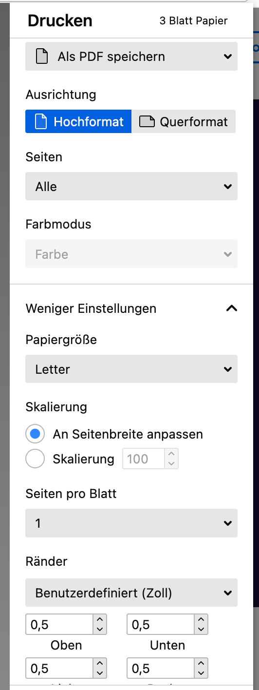 Noch 'ne letzte Frage: Was bedeutet "Mit Systemdialog drucken"? Ich kann keine Veränderung im Ablauf feststellen. Eine Drucker-eigene Oberfläche wird nicht aufgerufen. Wenn der Drucker beidseitig-fähig ist, erscheinen die entsprechenden Einstell-Felder automatisch unter "Mehr Einstellungen".