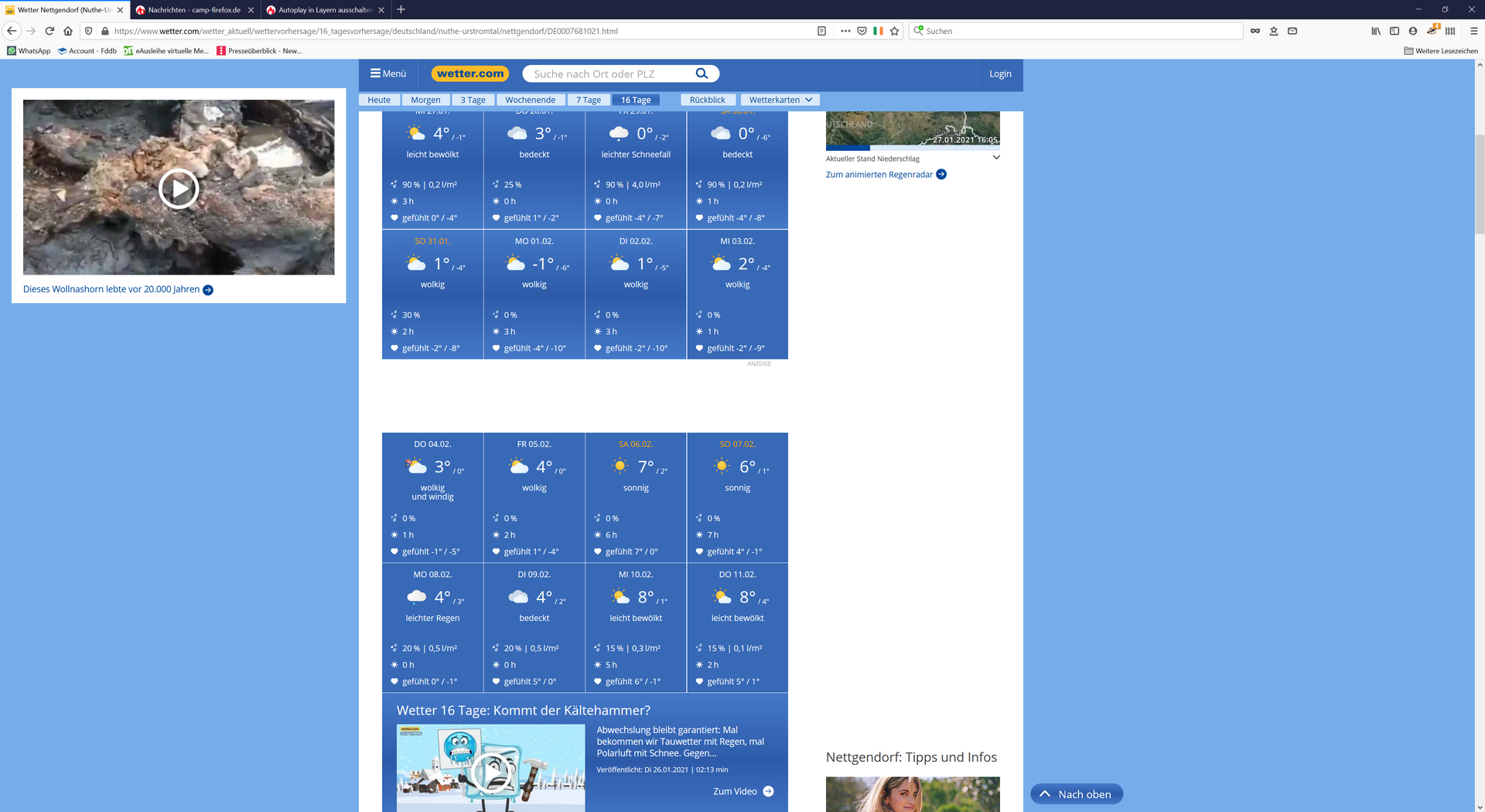 Am allerschönsten ist es heute gerade auf wetter.com, wo ein Layer aufgeht, bei dem noch nicht einmal mehr Steuerelemente zu sehen sind, sondern ein Klick lediglich dazu führt, dass ich mit mit einem tiefgefrorerenen Wollnashorn im Vollbild beglücken muss oder alternativ am linken oberen Bildrand ein Gezappel habe.