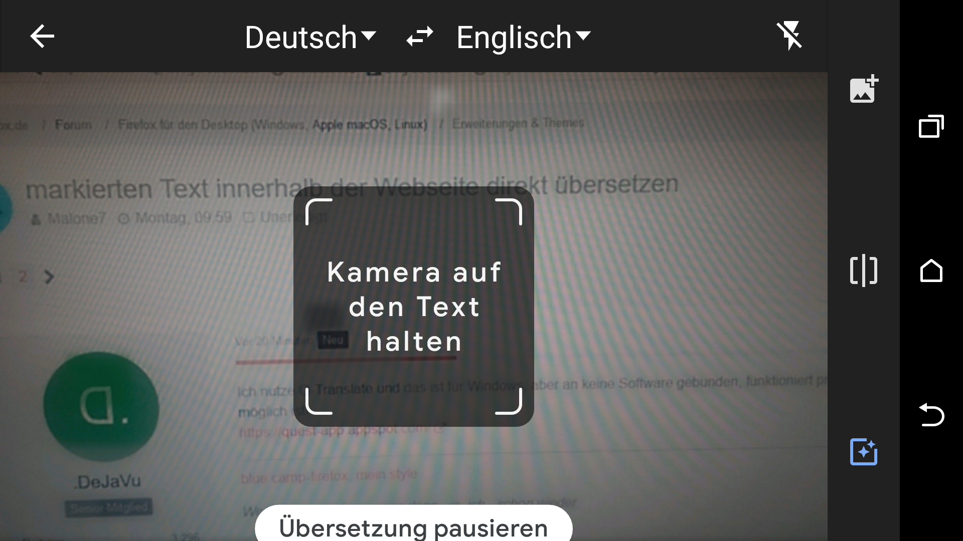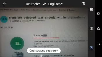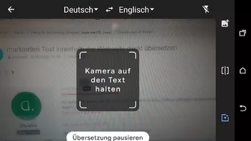 Beispiel von Deutsch nach Englisch, halte das Smartphone auf den zu übersetzenden Text und der wird durch den Englischen ersetzt.