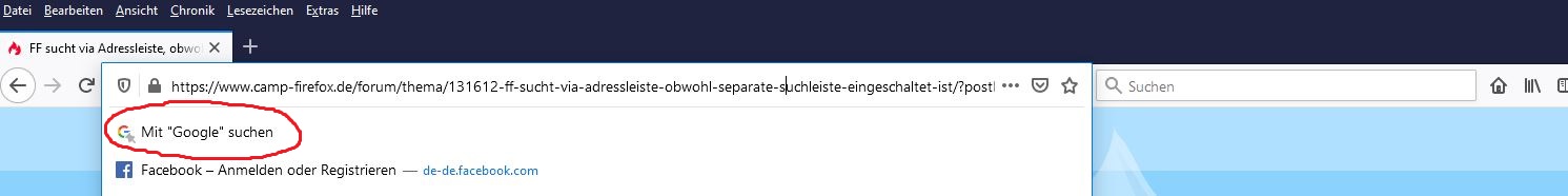 wie kann ich in der (geöffneten) Adressleiste mit "Goggle" suchen entfernen.