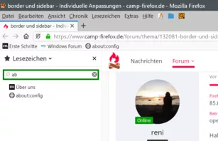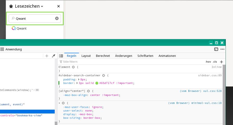 Ich kann Rahmen setzten um die gesamte Sidebar (möchte ich nicht) oder um das Textfeld "Lesezeichen" oder nur border-bottom unter dem Textfeld (möchte ich auch nicht) und noch so einiges.