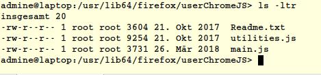 Ich hab es versucht und funzt aber nicht. Alles so verteilt, wie beschrieben und ein Script kopiert von github.com für den "about:config-Button" - ich bekomme aber keinen Button zu sehen ![]()