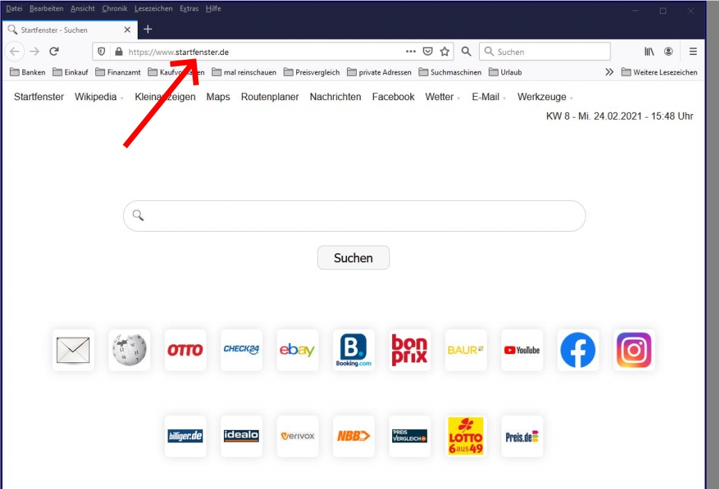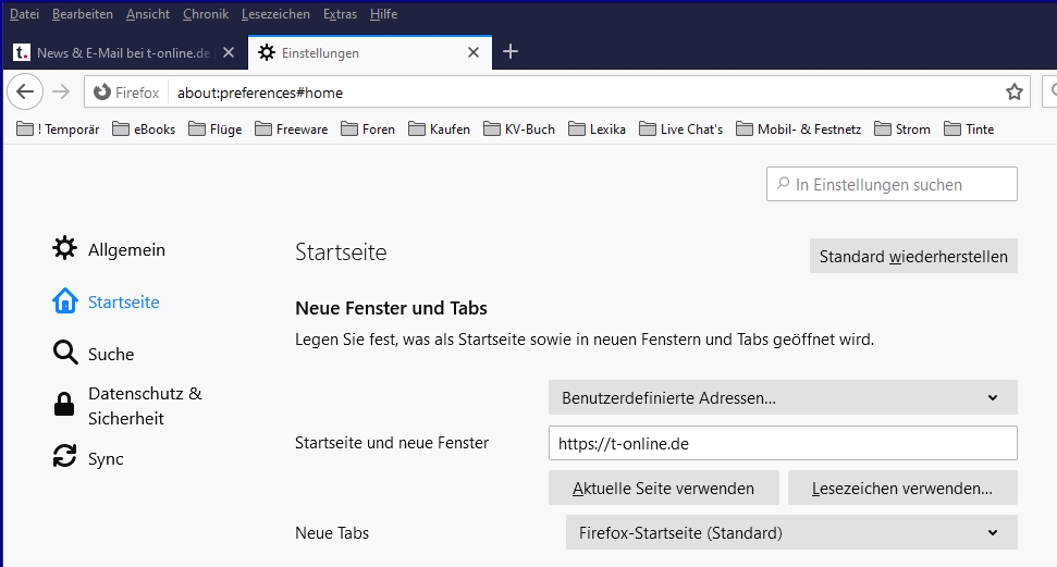 Ich habe unter "Einstellungen" meine gewünschte Startseite eingetragen: