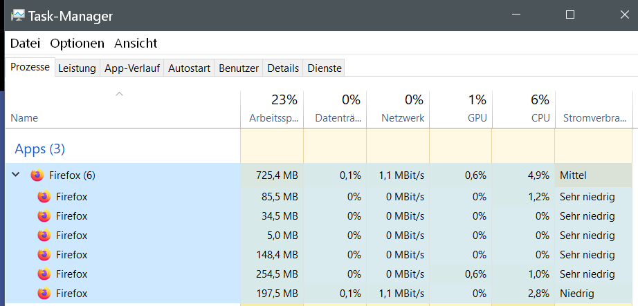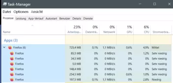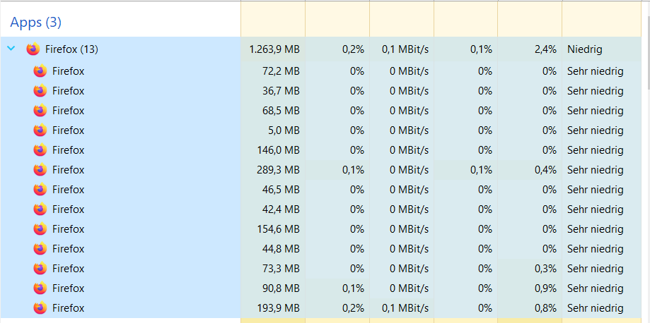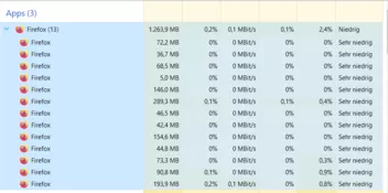 - selbst das Beenden von Firefox dauert extrem lange, falls er denn mal reagiert