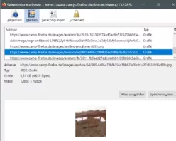 • Man kann auch wie gehabt das Bild direkt anzeigen und dann die besagte Tastenkombination drücken. Dann spart man sich das Durchklicken, weil man direkt bei den Informationen zum Bild landet. Oder man nutzt die Entwicklerwerkzeuge, konkret das Netzwerkanalyse-Tool, welches die gleichen Informationen zeigt - aber noch sehr viel mehr. ;)