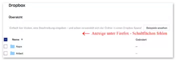 Zum Beispiel unter Dropbox, hier fehlen mir die Schaltflächen zum herunterladen usw. ich hab zur Veranschaulichung mal 2 Grafiken hier mit angehängt, eine wie es unter Firefox aussieht, und eine wie es unter MS Edge aussieht.