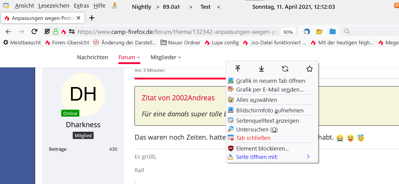 Im Nightly müssten diverse Anpassungen in den CSS- Codes gemacht werden...