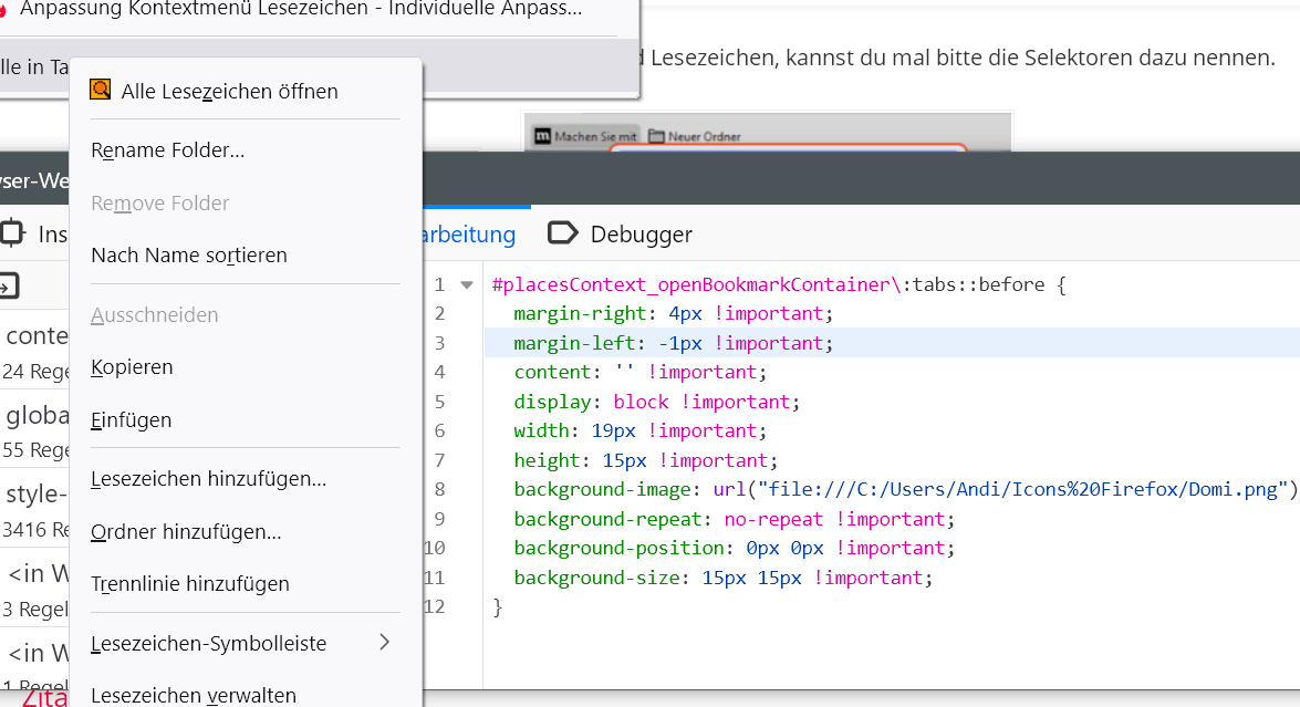• So habe ich es gemacht, mich gewundert, dass keine Anzeige kommt. Mir geht es um diese beiden Einträge für Ordner in der Lesezeichen-Symbolleiste.